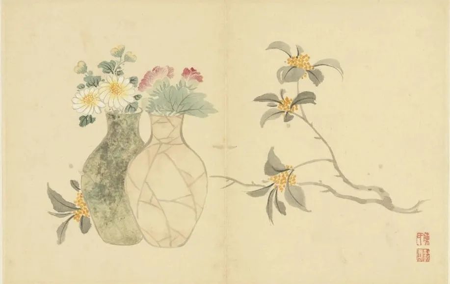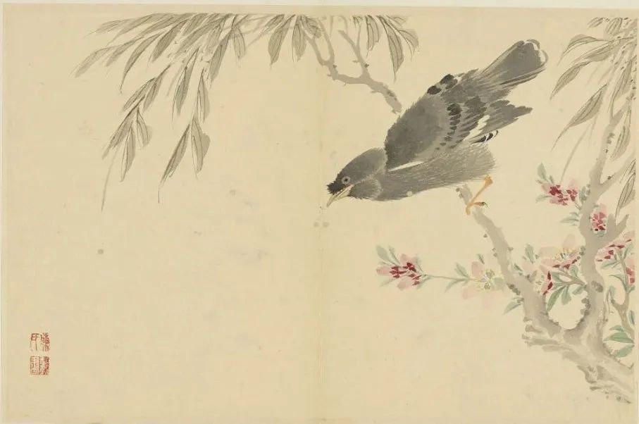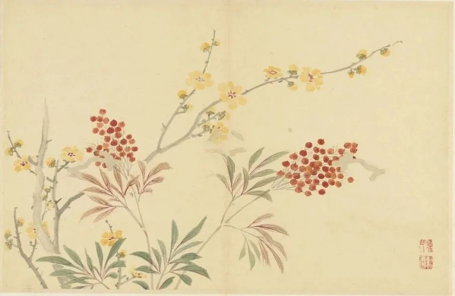 册页中,棘条与兰花的并置构成隐秘的叙事。棘条的尖刺指向画面外,暗示外界对女性艺术空间的挤压;而兰花以柔韧姿态缠绕石壁,展现生存智慧。这种“以物喻人”的手法,在《仿古花卉翎毛图册》中更趋成熟——海棠配白头翁象征长寿,红梅与翎毛呼应坚韧,植物成为承载家族记忆与个人情感的密码本。